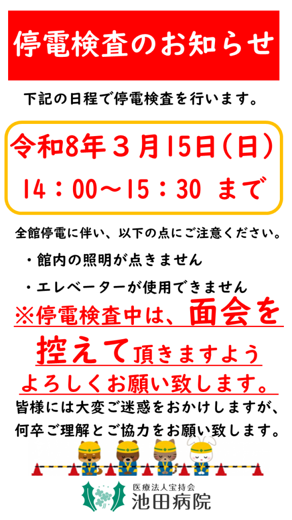 停電検査について。詳しくはこちらをご確認下さい。